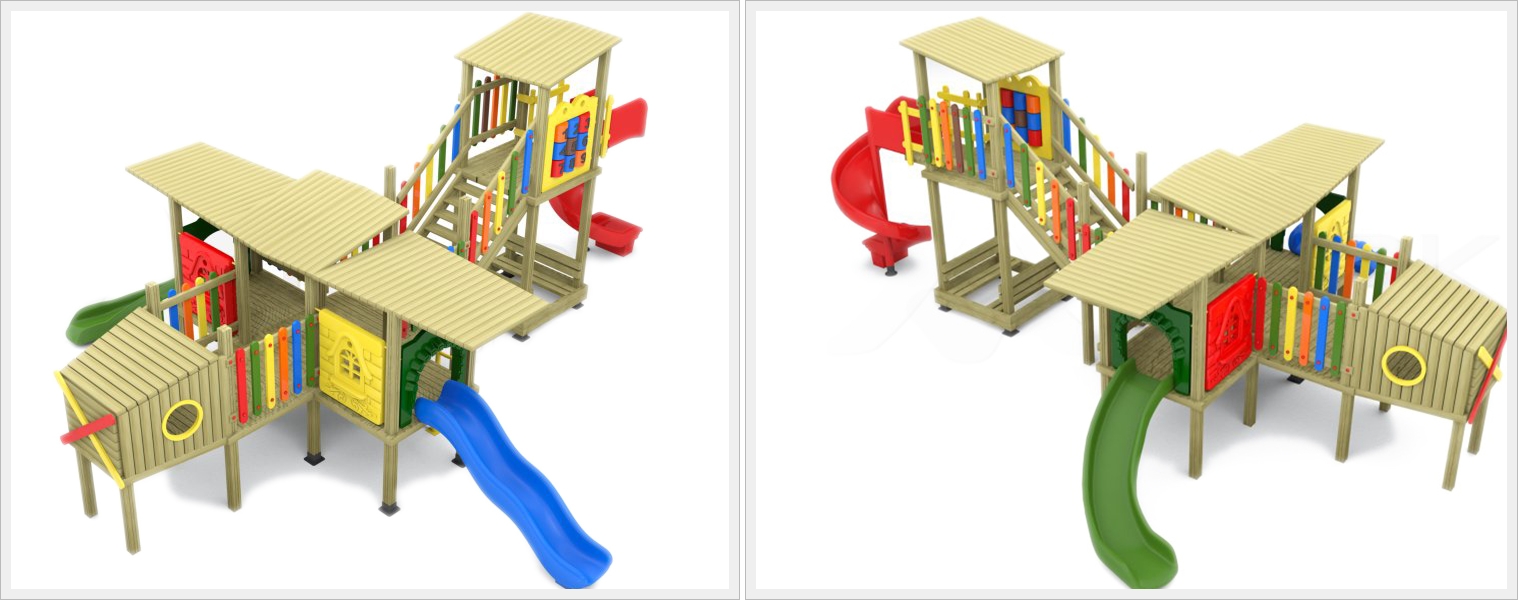 Uçak Ahşap Çocuk Oyun Parkı; Spiral Kaydırak, Spiral Kaydırak, Eğimli Kaydırak